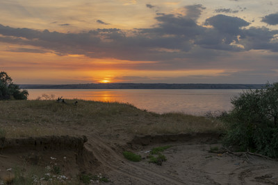 Летний вечер на Волге, закат солнца.