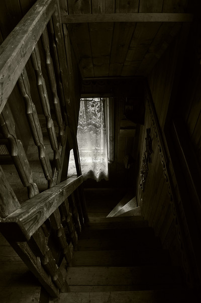 Düster, dunkel aber auch sehr reizvoll mit dem Licht vom Fenster und auf der Treppenstufe. Perfekt.