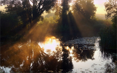 Летним туманным утром на речке