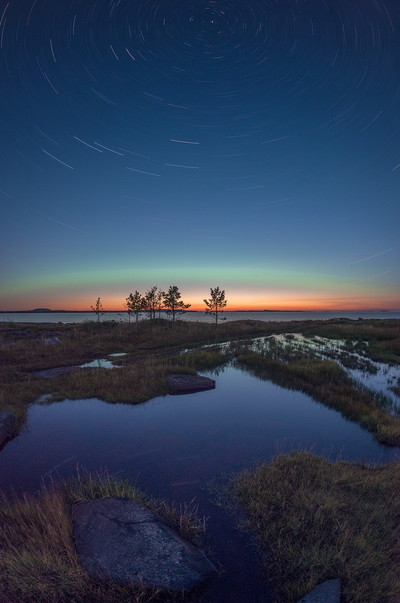 Онежская губа, Лопский берег. Один кадр. В качестве бонуса получил небольшое свечение полярного сияния. Глазами его проворонил...