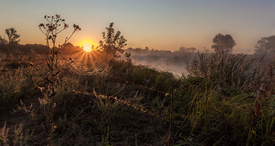 В краю осенних паутин Пылает ярко осени огонь, Здесь плавят звенья тонкой паутины, И цепи ткут неизмеримо длинно, И ловят сетью странницу-Любовь! Здесь будет всяк красой заворожен, Опутан нитью, пряжей окольцован, Объятьем осени неумолимо скован, И неземным богатством окружен! (Алтанец А., сентябрь 2020г.) |