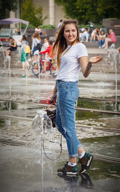 На фонтане...