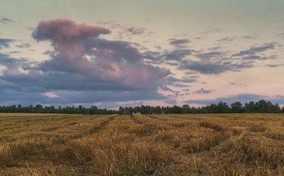 Вечерние облака над скошенным полем
