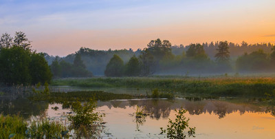 В июне были сильные дожди. Вода в озёрах вышла из берегов и затопила низину между озёрами Рожок и Сосновое. Мещера.