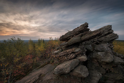 Ненастный сентябрь над останцами Рудянского споя у Губахи, Пермский край.