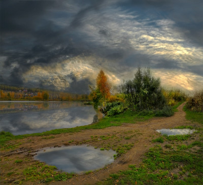 Интересная обработка,что даже в луже прекрасно показано отражение облаков!