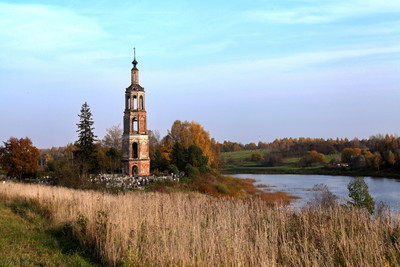 Колокольня церкви Спаса Преображения. с. Спасское.Село Спасское расположено по склону горы при реке Корожичне. Рядом с колокольней располагается сельское кладбище,храма нет.