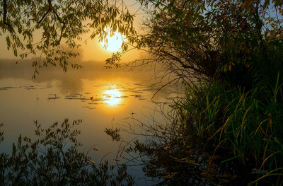 Красиво с отражением, солнце, как бы за вуалью!