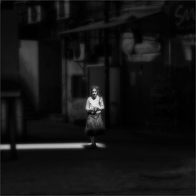 , Это район, где живут ультра-ортодоксальные граждане, двор многоквартирного дома, очень темный...