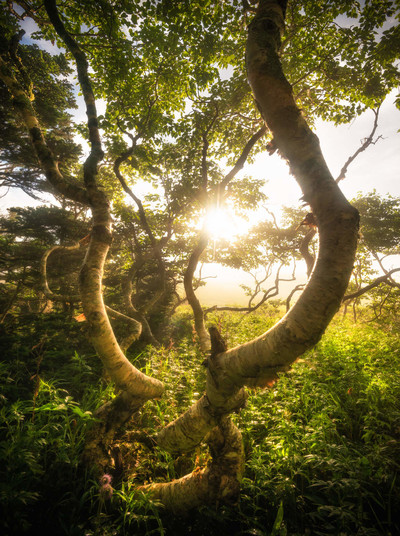Леса Шикотана. Удивительные формы деревьев на Южных Курилах не могут быть не замечены фотографами! А если ещё повезёт с лёгким туманчиком и солнышком, то лес выглядит просто сказочным! Остров Шикотан (Курилы), август 2020. |