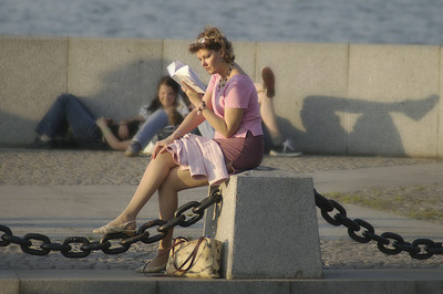 смотрю и верю, что дама не только умеет читать, но и увлеклась... хороший кадр!