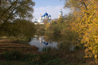 Боголюбовский монастырь в обрамлении осени великолепен. Ракурс классный! Там не очень легко найти отражение.