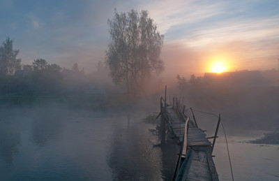 Очень интригующе со старым мостиком, уходящим в туман!