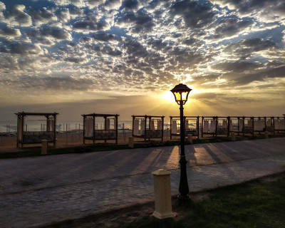 Красное море, восход, улица, фонарь. /Сахль-Хашиш. Египет./