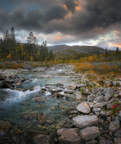 Кольский полуостров, Мурманская область, горный массив Хибины, ручей Маннепахк, сентябрь 2020 года.