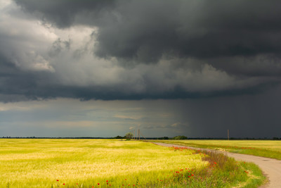 Замечательно, на фоне грозного неба, красота сверкающих на обочине маков!