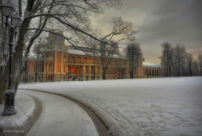 На снимке Екатерининский Дворец озаренный лучами восходящего солнца .