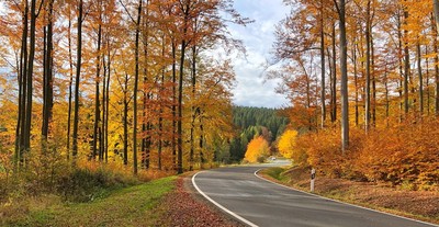 Красиво хвойный лес вписался в центре между позолоченными буками!