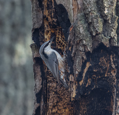 Обыкновенный поползень (Sitta europaea). Нашёл осиную кладку и потихоньку её опустошал. В общем, день удался. У поползня.