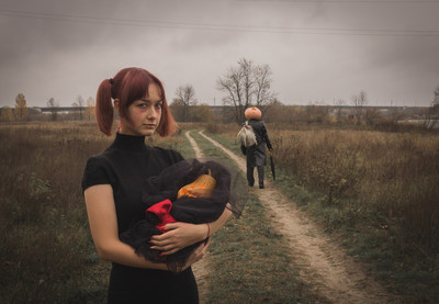 Дитя тьмы , на их фоне , это шедевр концептуализма , я голосую за тыковку , вот вырастит малыш и настучит папе по хулуину за такую социальную безответственность . А посмотрите как безупречно выстроен композиционно кадр , дорога уходящая в даль , Мадонна с младенцем на руках , Шекспир плачет ..., но провода лучше затереть и дальний план размазать от конкретики деталей индустриального ландшафта. |