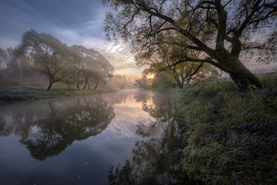 Старые кряжистые деревья тянули ветви к воде словно пытаясь посмотреть на свое отражение в реке.