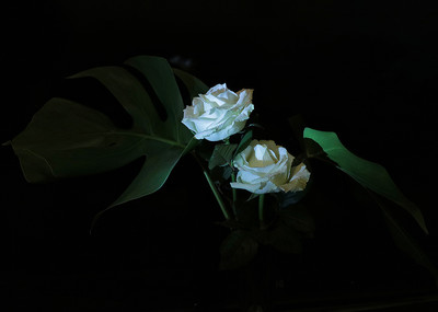 Интересная идея - розы белые и световая кисть.