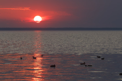 Уходящий день, солнце,озеро,отражение