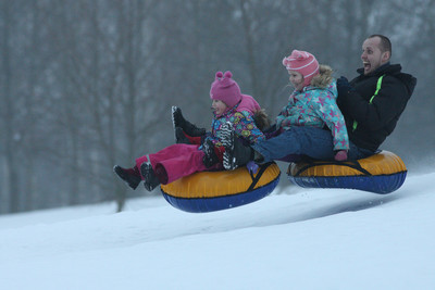 Начало марта 2018 г. Дети с родителями весело и БЕЗОПАСНО катались на ватрушках. С разрешения родителей сделал несколько кадров.