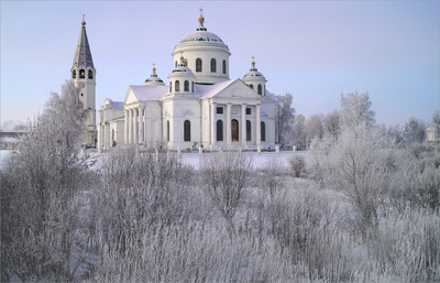 Александр Судденков, Да, Вы правы! Отдельно стоящая колокольня с шатровым куполом была построена почти на сто лет раньше самого храма, запечатленного на фото, и была частью другой церкви, на месте которой и был возведен в 1815 году действующий ныне собор. Зимой, когда зеленые крыши собора покрыты снегом, он смотрится строже и гармоничнее. Благодарю Вас за комментарий!
