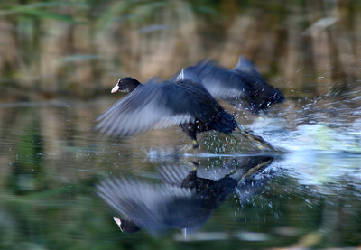 класический забег лысух - зачем летать, если можно пробежать по воде, аки посуху