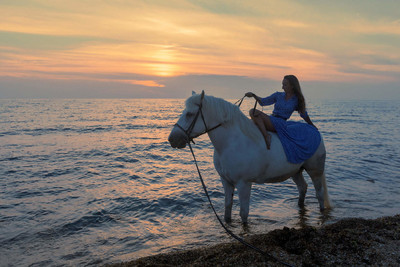 Супер! Очень смотрится девушка на коне, на фоне морского заката!
