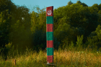 , Нет, этот столбик стоит около реки Волга в Нижегородской обл., кто-то из местных его перекрасил в пограничный столбик