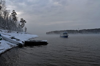 Шумиха, Красноярская ГЭС, наш катер на подходе, а дальше - Бирюсинский залив!