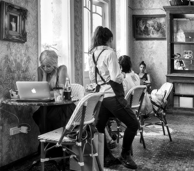 Борис! Мне нравится на этом снимке в кафе расслабленная домашняя обстановка. Каждый занимается тем,что по душе...Остальное не имеет никакого значения!!!
