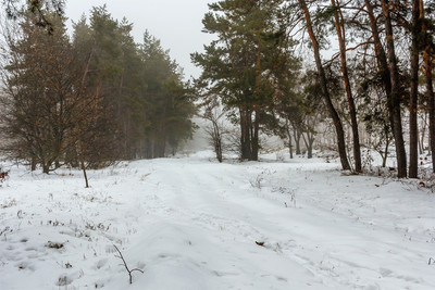 Утро. туман возле леса.. Ранним утром туманным. При входе в лес. Дорога вдаль, в туман.. При перемене погоды, плюс.. Ростки и растения из под снега на переднем плане.