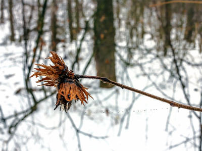 Три орешка для... В лесу зимним утром на Рождество.. Орешки оставшиеся на ветке. На орешнике зимой в лесу.. И паутинка с каплями. В режиме макро. Капли на нити паутины, как бусины.. На фоне заснеженного леса... При погодных условиях на плюс.. |