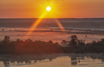 Раннее утро, ока, долина еще спит укрывшись одеялом тумана