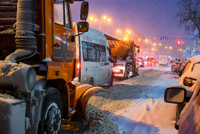 Уборочная техника с трудом справляется с январском снегопадом...