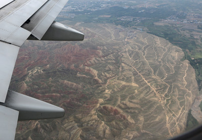 Китай. Полет из Чэнду в Урумчи. Подлетаем к предгорьям Тянь-Шаня.