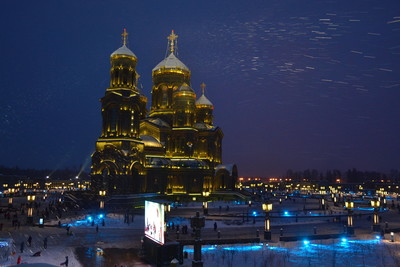 Храм Вооруженных Сил . Храм Воскресения Христова, или Главный храм Вооруженных сил Российской Федерации — храм в честь Воскресения Христова, «посвященный 75-летию Победы в Великой Отечественной войне, а также ратным подвигам русского народа во всех войнах». Храм расположен в парке «Патриот» в Одинцовском районе Московской области. |