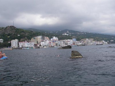 Выровнять по горизонтали, убрать из кадра человека, подрезать нижний край. Ну и подтянуть по качеству. Будет неплохой вид!