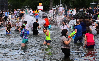 Видать было жарко,что столько народа решило посетить...и провести водные процедуры.... Интересный сюжет и интересноя,развлекательная работа!