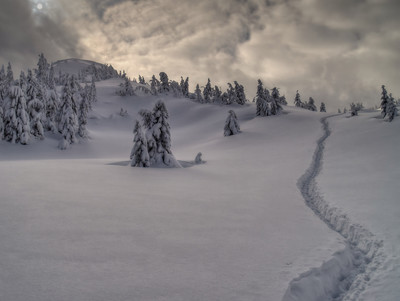 Anna Sklyarenko, Да, надо было запутать следы от погони Реально натоптанная впереди тропа самая оптимальная. Она выходит на перемычку Говерла-Петрос и далее начинается крутой подъем на вершину. Летом это хорошо нахоженная тропа, она идет серпантином. Зимой часто приходится подниматься практически в лоб - топтать тропу серпантином тяжело.