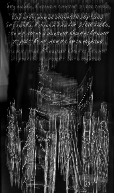 Книга жизни Шагала Скорость затвора 8/10 секунды, репортажная съемка в формате RAW, манипуляции с изображением выполнены в момент съёмки. Музей истории Витебского народного художественного училища, основанного Марком Шагалом, в котором преподавали Казимир Малевич, Юдель Пэн, Эль Лисицкий, здесь зародился УНОВИС. Интерактивное зеркало в кабинете Марка Шагала |
