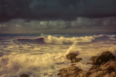 Неспокойно синее море, хмурится... Замечательно передано это состояние.