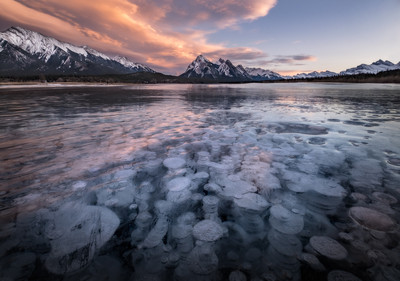 ЛЕДЯНЫЕ МЕДУЗЫ Царство метана в ледяных пузырях на озере Абарахам (Канада). Метан, газ - продукт разложения подводной растительности, скапливаясь подо льдом вмерзает в него, образуя причудливые полости |