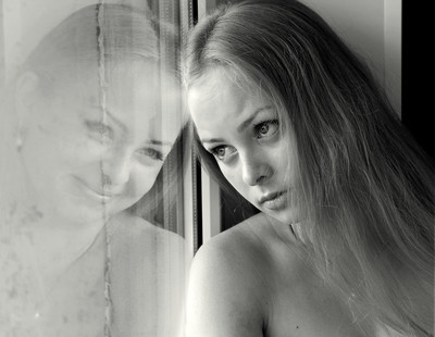 А что, задумка хорошая ) Есть кадр где наоборот, улыбается не отражение, а девушка )