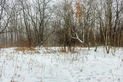 На поляне в лесу.. В лесу утром зимним. Поляна, небольшая, в лесу. Занесенная снегом. И небольшая туманность.. Оставшаяся листва на стволе дерева.. И зимний островок высохшей травы.. Зависшая рогатка из дерева справа.. |