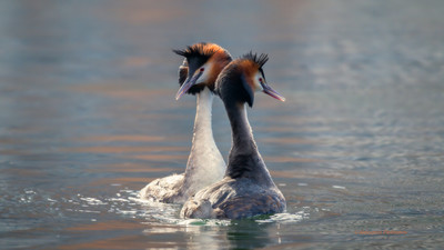 Уже в феврале чомги разбились на пары и можно наблюдать их танцы. А сегодня в Краснодаре идёт снег.