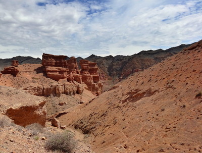 В Долине ЗАмков Чарына Чарынский каньон протянулся на 154 км вдоль реки Чарын в Алматинской области Казахстана. Удивительный памятник природы сложен из осадочных пород, возраст которых составляет порядка 12 миллионов лет. Высота достигает от 150 до 300 метров. |